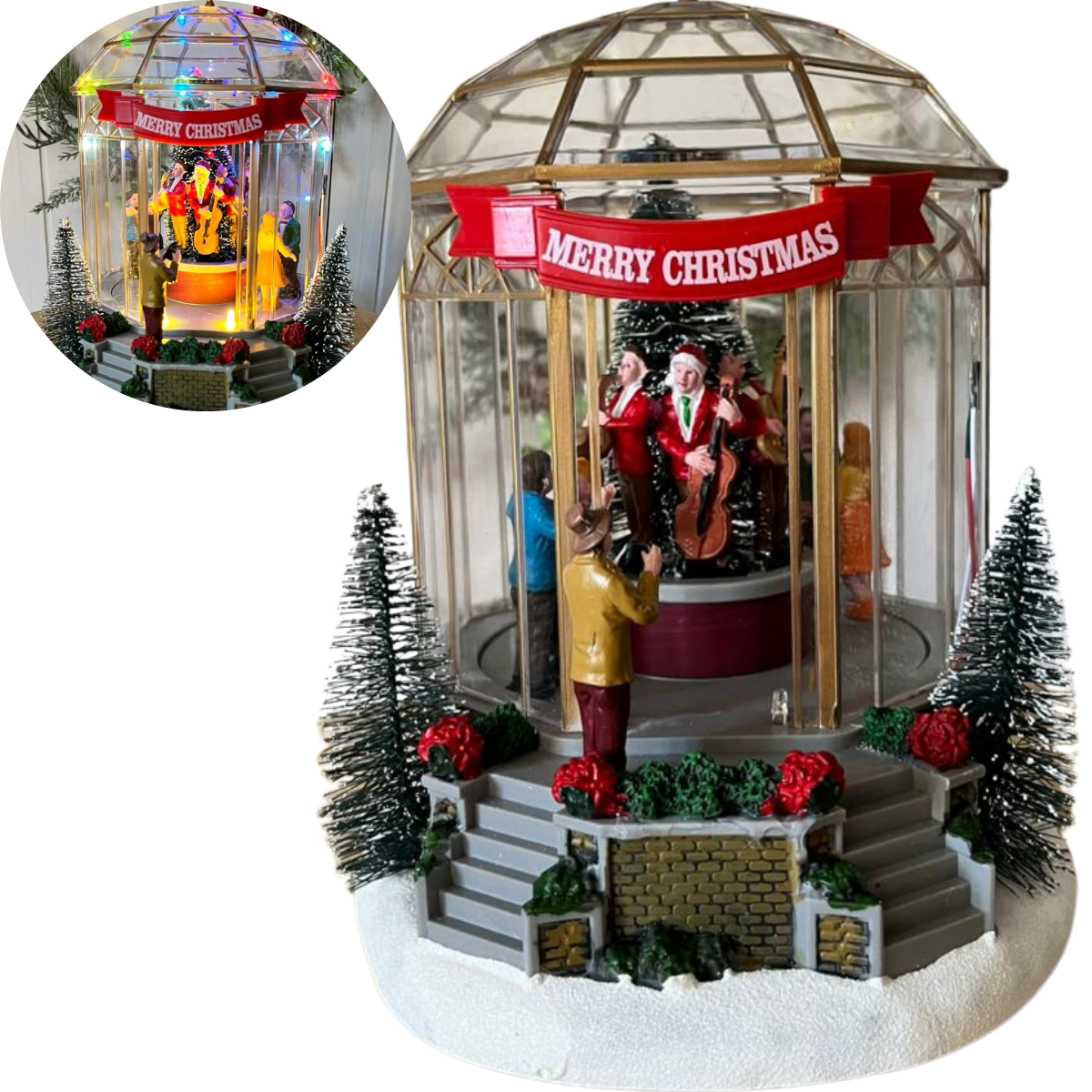 O clima natalino fica ainda mais especial com a combinação de música, luz e personagens em ação, tornando este coreto uma peça perfeita para mesas, aparadores, salas e coleções de vilas natalinas.