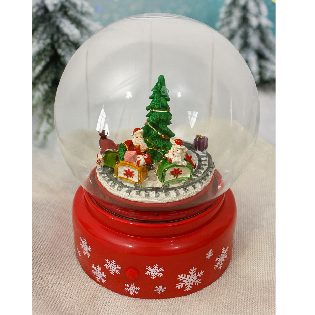 Encante-se com a magia do Natal com este Globo de Neve com Trem em Movimento e Luz, uma peça decorativa charmosa e encantadora que traz toda a atmosfera natalina para sua casa.
