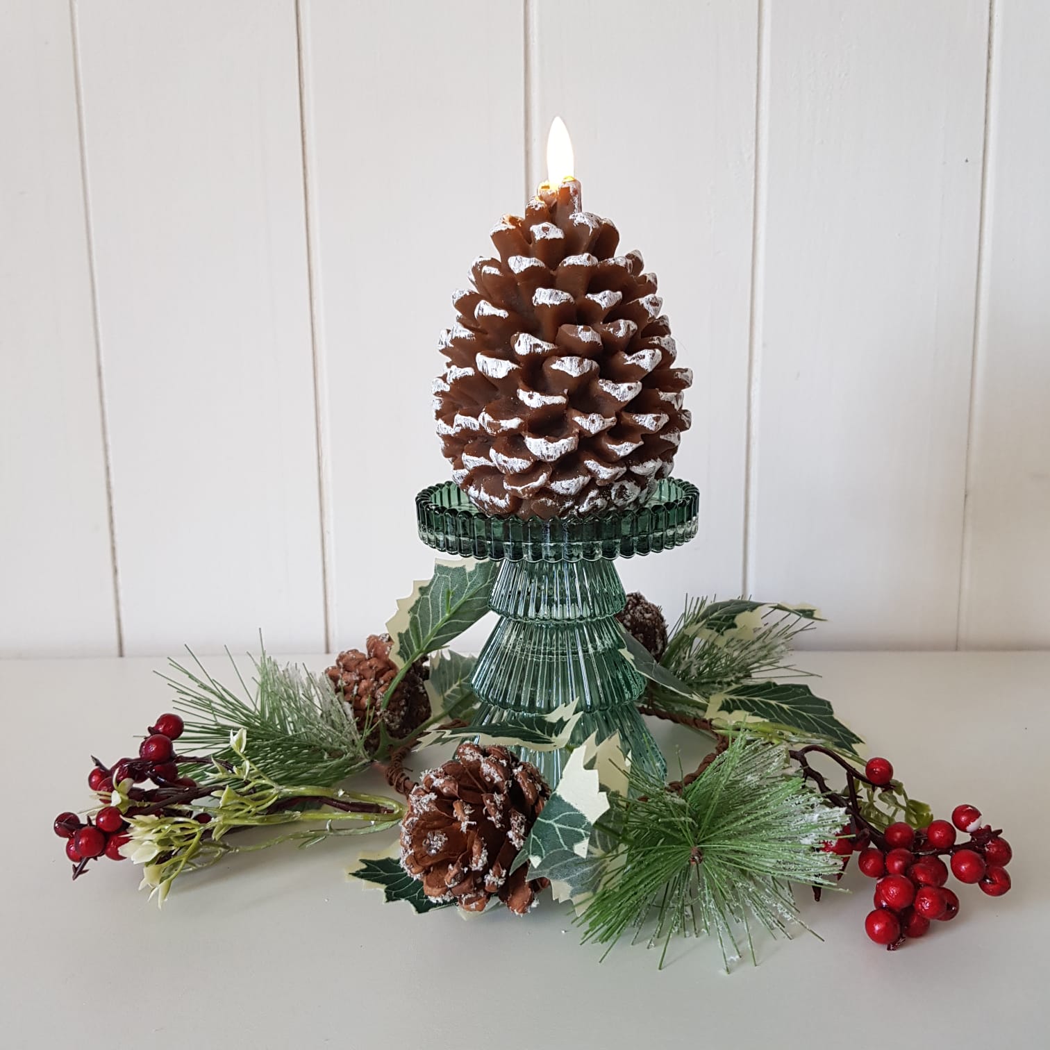 Encante sua decoração natalina com a Vela Decorativa em Formato de Pinha com LED, perfeita para criar um ambiente acolhedor, rústico e sofisticado.